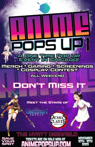 Anime Pops Up, a brand new Anime Experience is coming to the Chicago area with guests from Genshin Impact, Promised Neverland, and Demon Slayer already announced. Pre-reg prices are only $55 until July 31st! You can register at htps://www.animepopsup.com/