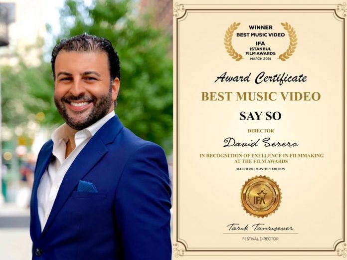 Opera singer, director, and producer David Serero is honored at the Istanbul Film Awards for his most recent productions of « Say So » by Doja Cat, which he recently adapted, arranged, and produced in a French Jazz version. David Serero is awarded in recognition of excellence in filmmaking by the Istanbul Film Awards 2021.